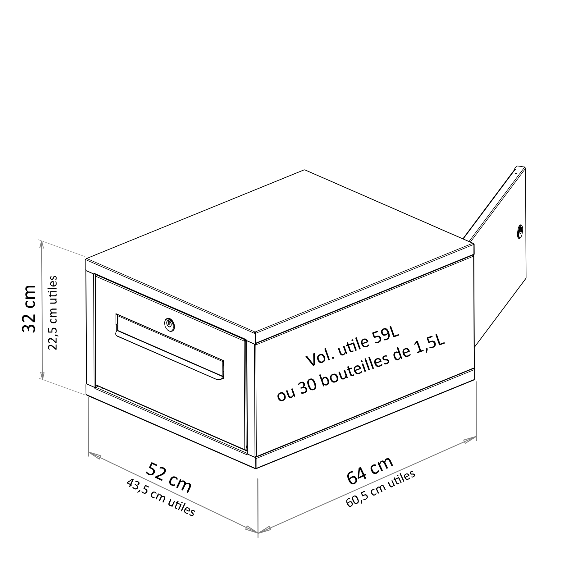 - Une grande capacité de stockage de 59L, soit 30 bouteilles de 1,5L