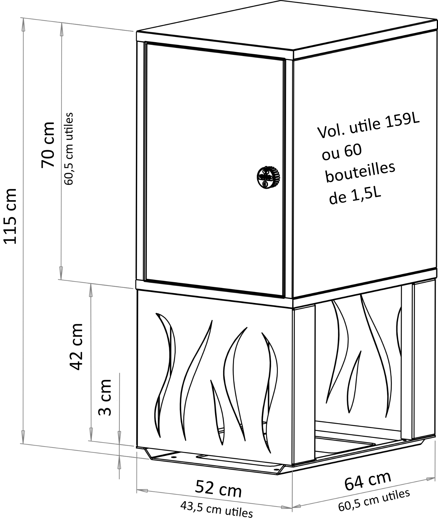 Avec une capacité de 166 Litres UTILES, stockage de 60 bouteilles de 1,5L